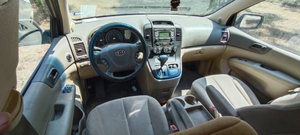 Blue title Ac works Heat works 130k miles 3 row seating Radio works Runs and drives good Cloth interior All doors works All windows work New battery 2 new tires A to B family van that will get you...