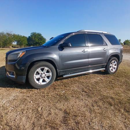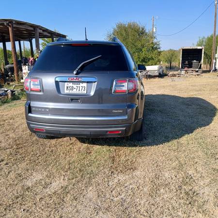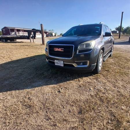 For sale: 2014 GMC Acadia. The SUV is in excellent condition, always kept under a roof. New front tires, rear entertainment screen for kids, 3 rows of seats, front and rear A/C. It has a trailer hitch, remote start with key fob.
