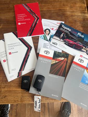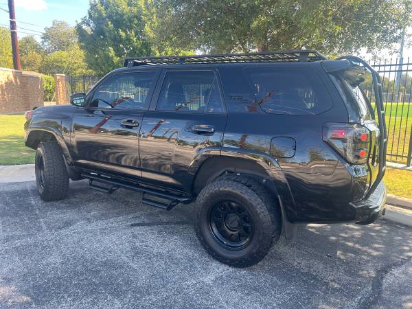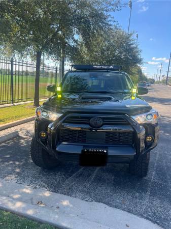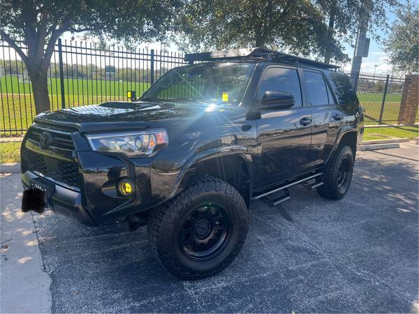 Pristine 2021 4Runner with 37,650 miles left on the transferable extended warranty. Sunroof, Method wheels, lift kit, ceramic coat, fog lamps and BajaRack. New battery in 2025. Great looking truck that drives like a dream in impeccable shape. I bought it as a Toyota Certified used vehicle (second owner) with only 8K miles in 2022 and have driven it coast to coast several times so ~85% of the mileage is on the highway. All service and oil changes have been performed at the Toyota dealership so they have all the electronic service records. 2 more oil changes left on the "extended service plan". Cosmetic fender bender in Jan 2025 but completely repaired to like new at Luxury Auto Body here in Austin. Squeaky clean truck with some minor dings but overall looks new inside and out. Includes both electronic key fobs, original paperwork/manuals and custom fitted truck cover. Individual seller, fairly priced and first cash offer at list gets the truck, otherwise best and final offers Thursday October 16th at 6pm local time. Located in Hyde Park.