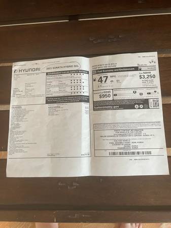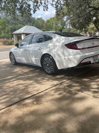 SERENITY WHITE/TAN CARBON BLUE INTERIOR. ONE OWNER WITH 15,995 ORIG. MILES. EXCELLENT CONDITION. 1,6 LTR TURBO HYBRID WITH ALL SEL OPTIONS. PWR PANORMAMIC SUN ROOF. PUSH BOTTON START, PREMIUM BOSE AUDIO, 6 SPD, AT SHIFTER WITH 10.25" NAVIGATION SCREEN AND 18" FACTORY ALLOY WHEELS. CAR IS TOTALLY OEM EQUIPPED. LIKE NEW COND, WITH CLEAN CAR FAX & NO ACCIDENTS AND CLEAN TX. TITLE. AWAYS GARAGED AND ADULT DRIVEN & SERVICED. HAS HYUNDAI FACTORY 10 YR./100K MILE OWNER TRANSFERABLE OWNERSHIP WARRANTY TO NEW OWNER.