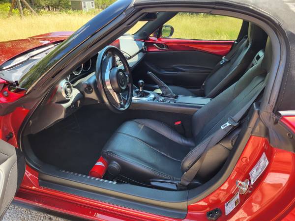 REDUCED!! Soft top version. 2nd owner. 53,400 miles. Small dent on trunk by emblem. Brand new windshield. Rear spoiler. Stubby antenna. Ohlin Road & Track DFV coilovers. Goodwin RoadsterSport Superstreet Single muffler. Goodwin RoadsterSport V2 front shock tower X brace. Goodwin RoadsterSport rear tower brace. Michelin MPS4 tires. Hidden Hitch. Fire extinguisher mount. All original parts provided. If you want a Miata, the ND2 is the one to get and this one is vastly improved over stock. A great daily driver!