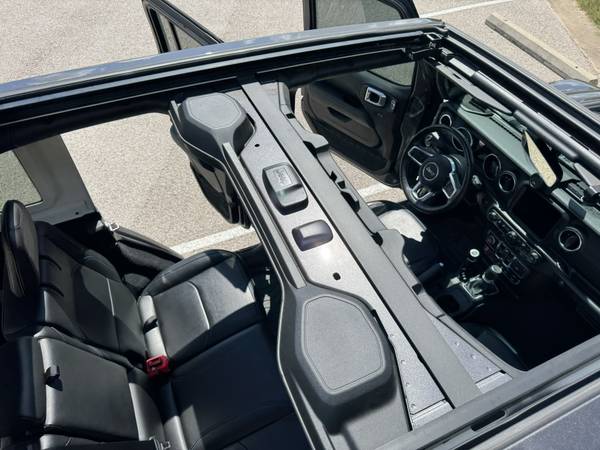 This Wrangler has an excellent feature for Jeepers: the sky-one-touch roof. You get that open air feeling without having to take the whole roof off (but you still could if you want, it's a Jeep). It doesn't change all the other removable features, just gives you another option.