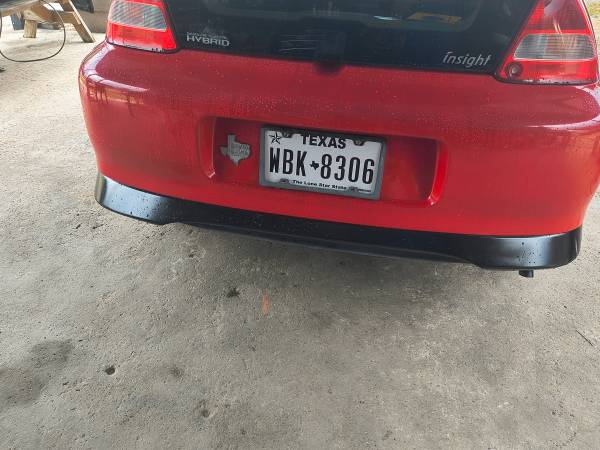 Red 2000 1st Generation Honda Insight for sale. 5-speed manual transmission, 3 cylinder 1 litre engine. New tires, new front brakes, new accessory drive belt, transmission fluid changed, rear hatch mechanism repaired, trip meter buttons repaired, front speakers replaced, ac and heat work perfectly. Front and rear wiper blades replaced, oil changed, cabin air filter and engine air filter changed, new battery and cables. Under 62,000 original miles, will go up, daily driving to work. Will make over 50 mpg easily, currently averaging 62 mpg. Hybrid system functioning normally. Perfect commuter car. Call or text Kevin 361nine98nine024