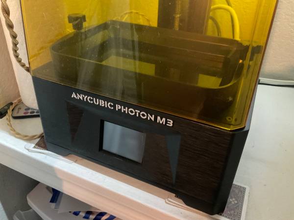 Includes an Anycubic Photon M3 printer and a Wash and Cure Plus, 1 1/2 bottles of plant-based clear resin, filters. Does need a new resin vat (unsuccessfully tried replacing the FEP film). Other...
