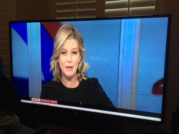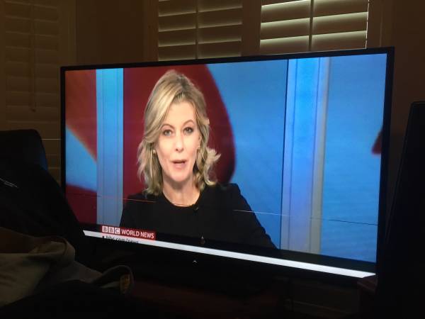 60" Sharp Aquos high definition TV model: LC-60LE550U. It has one thin line on the bottom and you can see on the pictures, hence low cheap price. It was hanged on the wall and does not have the original base.