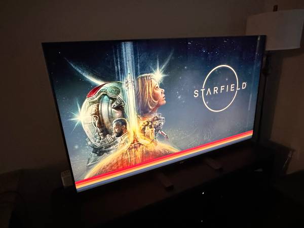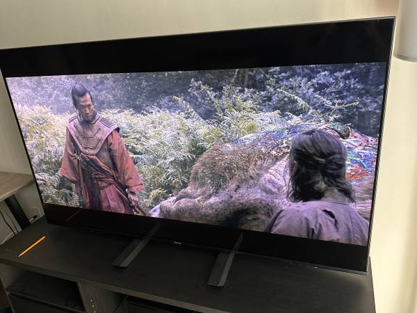 Great condition and awesome built in speakers. Bought for $1100. Too big for my new apartment. Adjustable stand included. Under Hisense warranty until June 2026. I can help you carry it and load it into a car. Thanks!