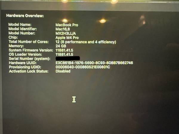2024 14” Macbook Pro, M4 Pro Chip, 24GB RAM, w/ original charger. Has been mostly used in desk but has few chips around edges. Fully functional with 100 cycle counts. Battery capacity 98%. Local...
