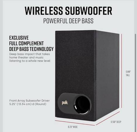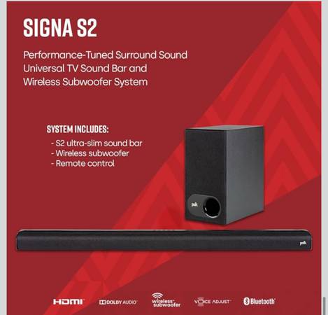 Polk Audio Signa S2 Sound Bar for Smart TV with Subwoofer, Wireless Has signs of use, but works 100% perfect. Can test in person. Retails for $250 on Amazon: https://a.co/d/0OBP0q4