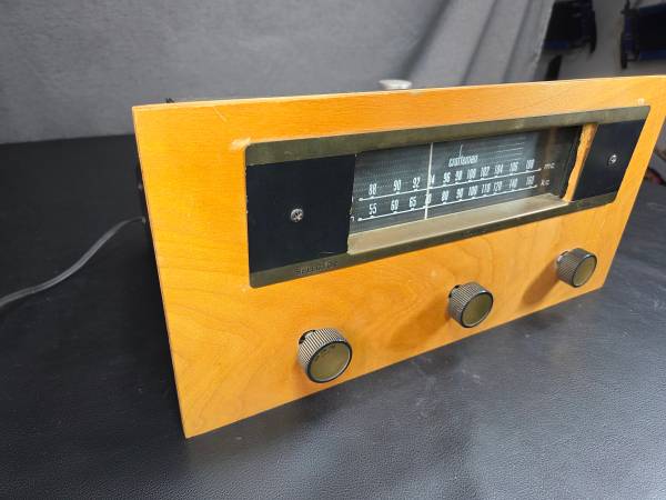 This vintage tube era tuner powers on and is able to tune in some stations. I'm not sure if it its in perfect working condition so it is being sold as is. I was able to tune in a few stations but it might need to be adjusted or calibrated.
