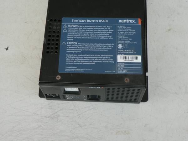 ANTREX RS400 SINE WAVE INVERTER, WHICH IS A DEVICE THAT CONVERTS DIRECT CURRENT (DC) FROM A BATTERY TO 120VAC OUTBUT AND, OR AC INPUT (PASS-THROUGH) 120VA