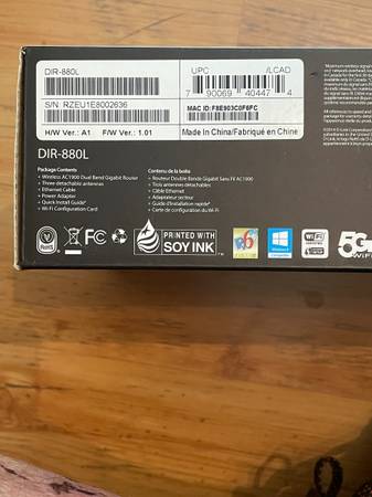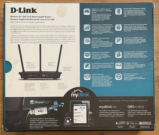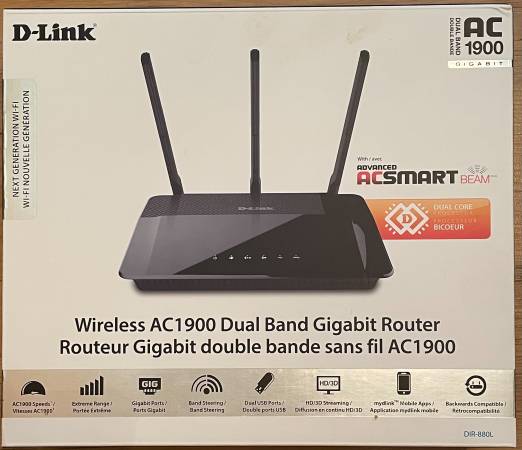 D-Link Wireless AC1900 Dual Band Gigabit Router Refer to photos for all detailed data Worked fine when unhooked Just didn't need two routers $30 OBO Cash only