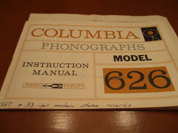 COLUMBIA 1958 TUBE RECORD PLAYER MODEL 626 NEEDS NEW NEEDLE 16 33 45 78 SPEEDS WITH MANUAL IT DROPS A RECORD AND THEN STOPS, BUT YOU CAN THEN TURN IT ON, PUT NEEDLE ON THE RECORD AND IT PLAYS. 15...