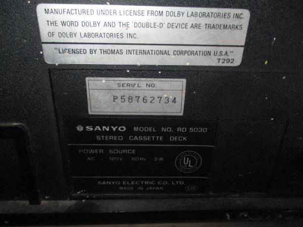 SANYO STEREO CASSETTE DECK MODEL RD5030 NEEDS WORK - BELTS? 16 1/2" WIDE, 11 1/4" DEEP, 3 1/2" TALL CASH ONLY. NO SHIPPING. WE HAVE MANY CASSETTES. WE HAVE MORE. WWW.CRAZYWAX.COM