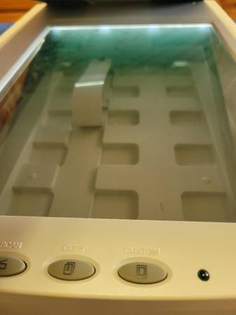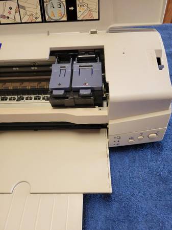 I bought this printer and scanner for my Apple G4 computer around 2000. I last used them around 2009. I need the room so they both have to go. Both power up as you can see in the pics. Beyond that, they should still work as they did when last used. I have no way of testing them now. I’m sure the printer will need ink after all of this time. The bulb in the scanner does come on.