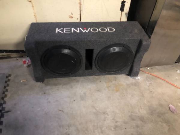 kenwood excelon PXW1221D 2- 12" subwoofers in quality ported cabinet. has the kenwood logo embroidered on top of rhe cabinet. I added 4 casters and 2 handles to it cause its a heavy beast. this cabinet bangs hard. i sold my truck ,thats why im selling it. Paid almost twice what asking for it. still in new condition. TEXT ME,