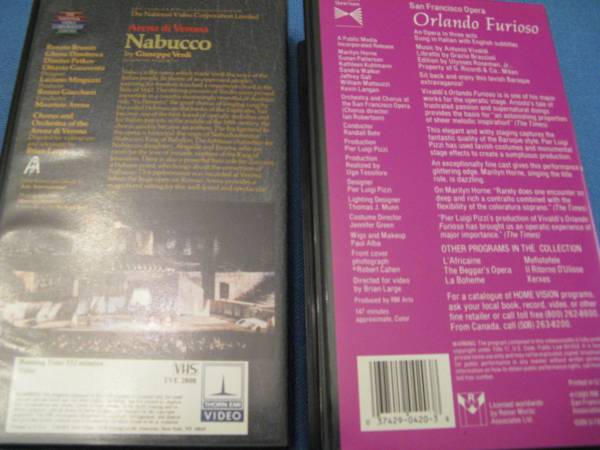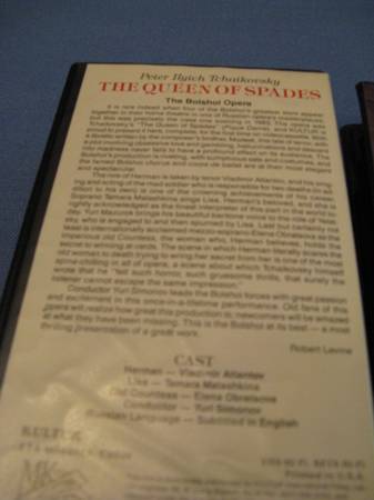 6 VHS OPERAS $4 EACH NABUCCO BY GIUSEPPE VERDI WITH BOOKLET. THE METROPOLITAN OPERA THE QUEEN OF SPADES: THE BOLSHOI OPERA BY PETER OLYCICH TCHAIKOVSKY (2 COPIES) GLYNDEBOURNE FESTIVAL OPERA A...