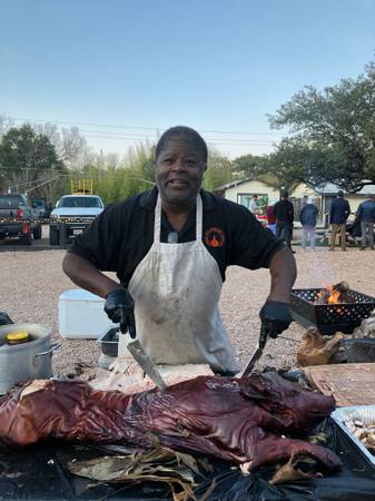 Specially-made made foods for your special evnet : whole roasted pigs, spicy crawfish/corn/ potatoes in season, oak -smoked barbecue you choose from the 3 page menu. With a large selection of side dishes, desserts, vegetarian foods, Tex-Mex, gumbos, all delivered & set up, served anywhere within Central Texas. We are insured ($2 million liability policy), licensed and trained, disease-free, and we cater all types of events: wedding receptions, reunions, company gatherings, birthdays, whatever event you want tasty food at.