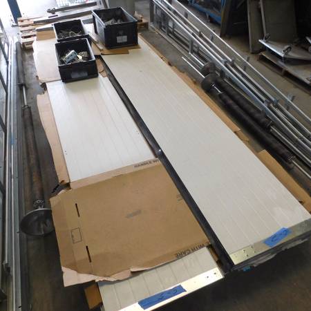 We have for sale commercial garage doors. The doors was installed in a commercial building and covered by windows on the outside. The doors are in excellent condition and include the panels, rails, springs, and all hardware needed for installation. The doors raise straight up and do not curve under the roof. The door panel color is white.