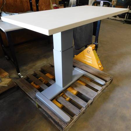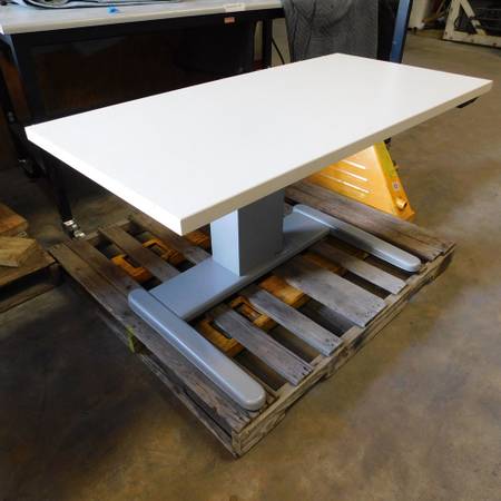 We have for sale Mayline Electric height adjustable desks. Each desk is in good used condition with minor signs of use. The desks raise and lower with the press of the button as intended. The desk top measures 48 inches wide x 23-1/2 inches deep. The desk can go down to 26 inches high and up to 42 inches high. The max capacity of the desk is 150 pounds.
