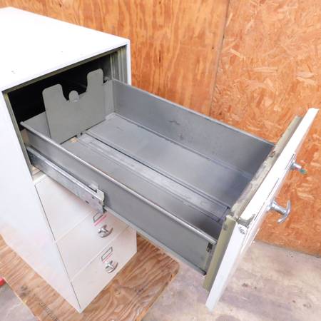 We have for sale Meilink Built Hercules One Hour fire proof safe cabinet. This cabinet is in used condition and shows minor scuffs, scratches, and small dents consistent with normal use. It features a locking mechanism that secures all drawers when the lock is pushed in and easily unlocks with a simple turn of the key (key included). The overall dimensions are 20-1/2" L x 30-1/2" D x 55-3/4" H, and the drawers measure 15-1/2" W x 26-1/2" D x 6" H.