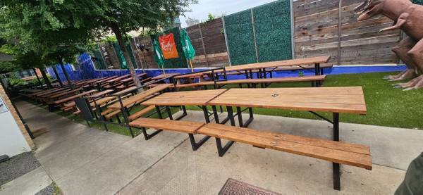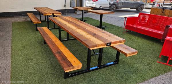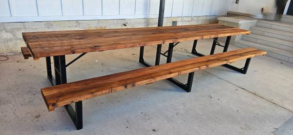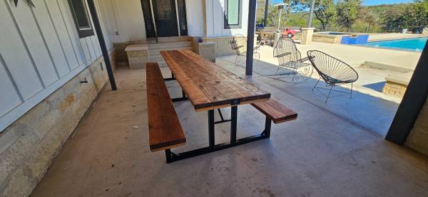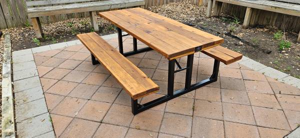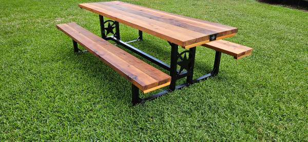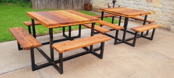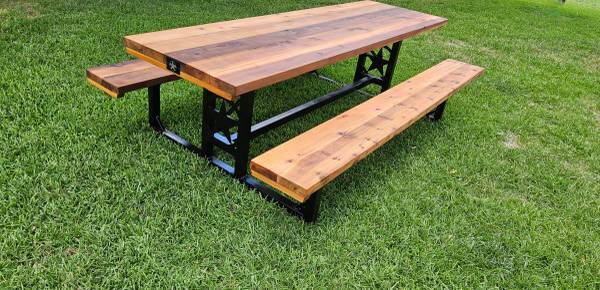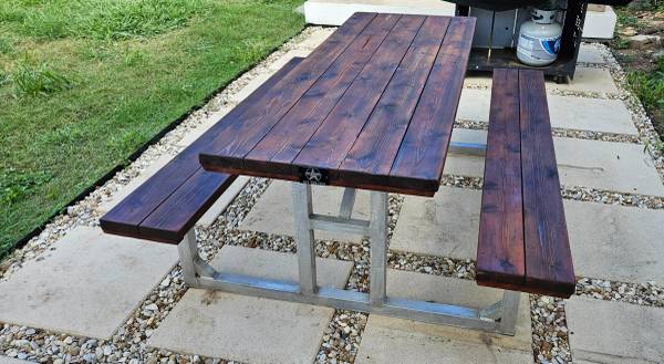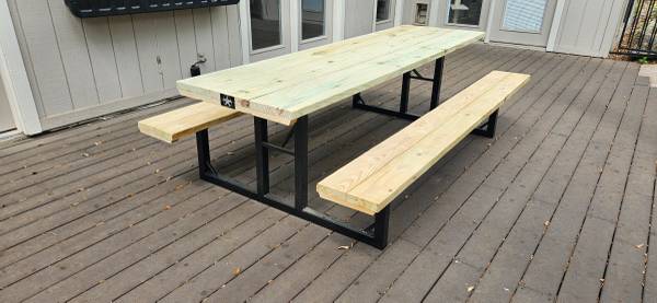 Now offering Pressure treader Pine and Cedar wood picnic table with Metal frame!! Wooden picnic table are made using Durability Pressure treader pine and Cedar for lasting durability and strength. Heavy duty 2"×2" square Tubular steel legs and Welded frame provide a sound struturel base won't warp,crack or splinter. 4' 6' 8' 10' and 12' tables are available lengths!! LENGTH×WIDTH×HEIGHT 72"×60"×27" Extra charge for Stain-Seal on the Top. Also I offer delivery for extra charge depending on your area. Tough enough for camps, shelters, homes, apartments, ranchers,restaurants and More.