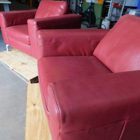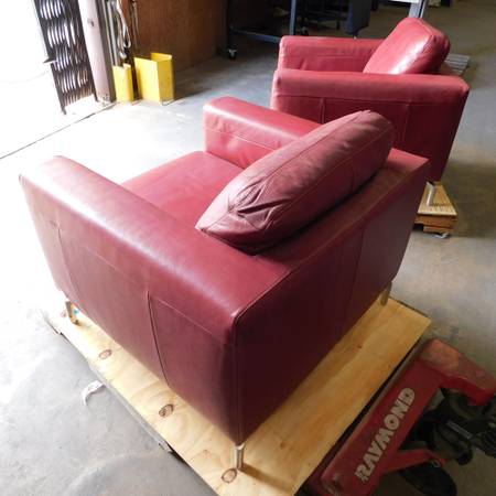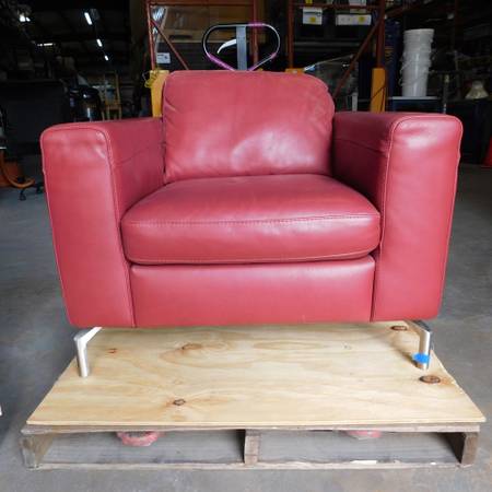 We have for sale a Natuzzi Editions red bonded leather armchair. The chair is in great condition and features chrome legs. The seat measures 22 inches wide x 22 inches deep x 18" high. The arm rests are 8 inches wide x 26 inches high. The chair measures 38 inches wide x 36 inches deep. The pillow cushion is removable.