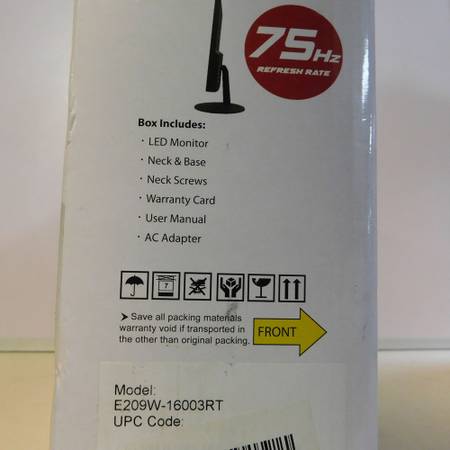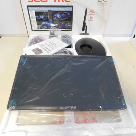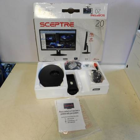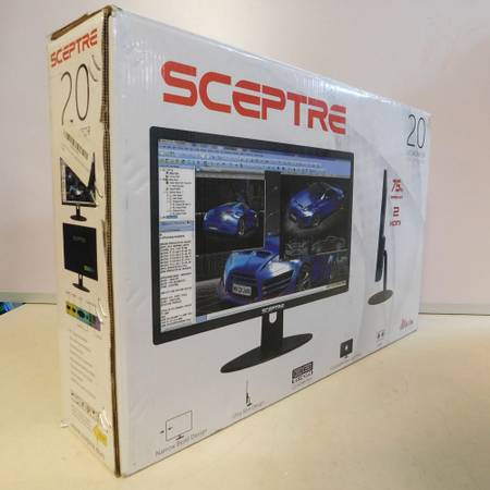 We have a new, open-box Scepter E209W-16003RT 20" Display Monitor for sale. The monitor includes the stand, hanging hardware, power adapter, HDMI cable, and owner's manual with the original box. The monitor is in new condition.