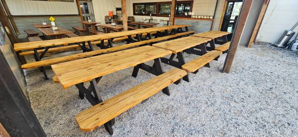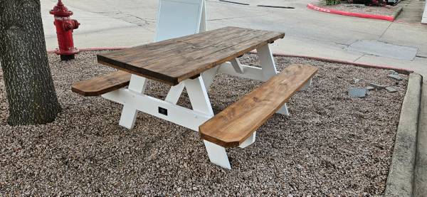 I make a beautiful 4', 6', 8' and 10' Park Style, Apartment size PICNIC TABLE made out of Pressure Treated 2 x 6's, Bolts, and Screws (NO Nails). will seat 6 adults.All tables are sanded Each top and seat has routed corners for safety . They are strong in structure and won't tip when sitting on one corner , if you are interested Please text me for more information.
