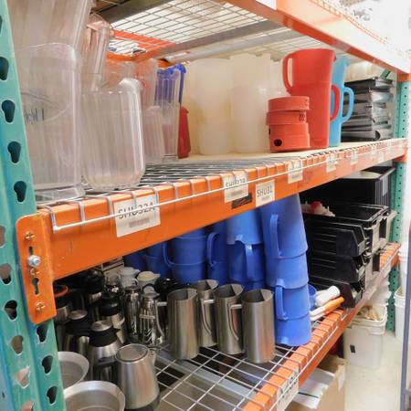 We have a wide variety of kitchen and restaurant smallware including plates, glasses, cookware, hand tools, baking supplies, stainless steel, chafing supply, food storage, food prep, and more. Please call 512-999-3894 or 512-913-6048 to schedule an appointment to visit the shop.