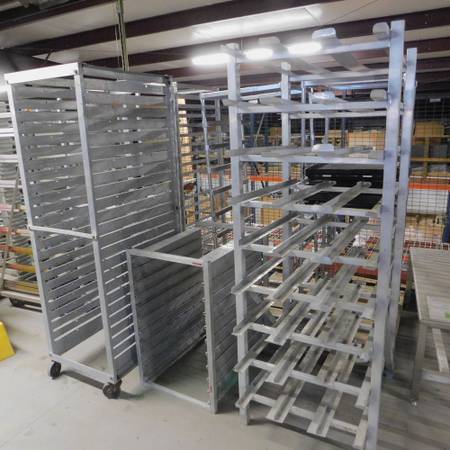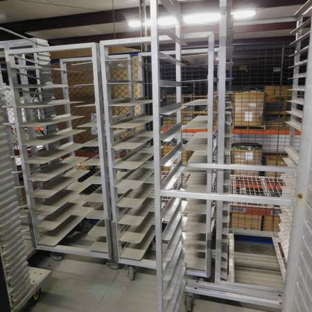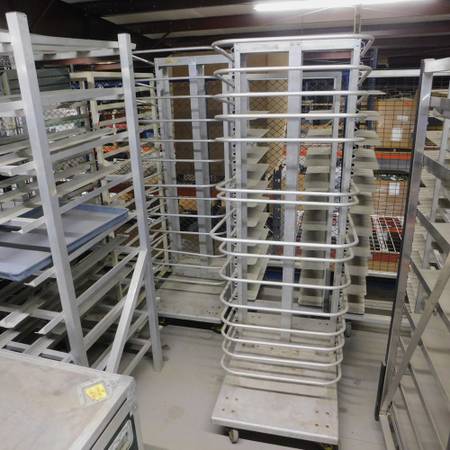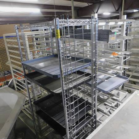 We have for sale various speed racks and sheet pan racks. Good for bakeries, restaurants, pizza shops, drying, or storage. Some racks are aluminum and some are stainless steel.