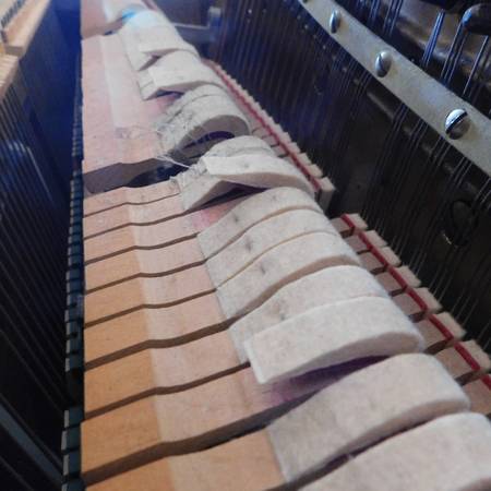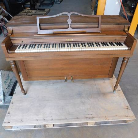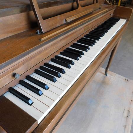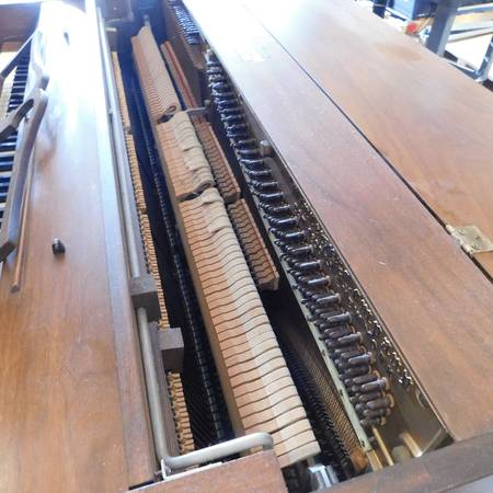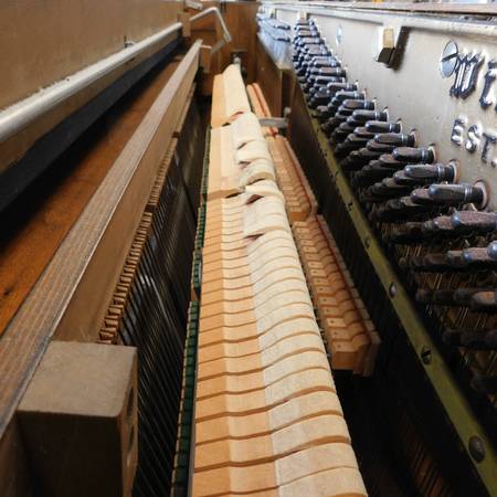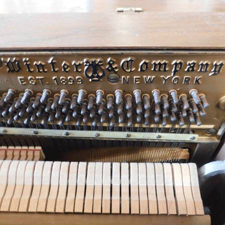 We have for sale a vintage Winter & Co. upright piano. The piano plays well although it needs to be tuned up. Some felt tips have come loose on the middle section of the keyboard hammers but the hammers function as intended. There are some wood stains along the left top and edge. Otherwise, the piano is in good overall condition.