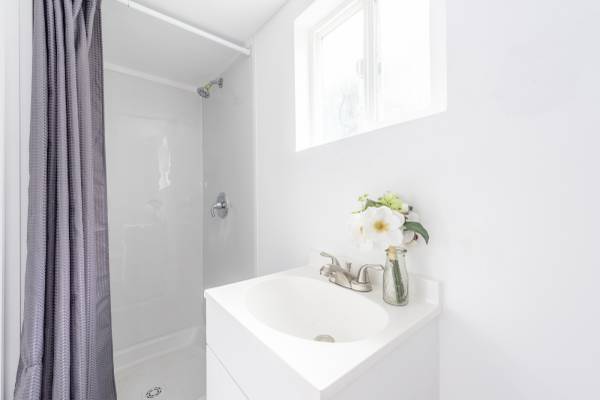 • Full Bathroom: Shower Enclosure with Glass Door, Custom Vanity & Countertop, Sink Faucet, Vanity Light with Exhaust Fan, Flush Mount Medicine Cabinet, Toilet and Energy Efficient Water Heater