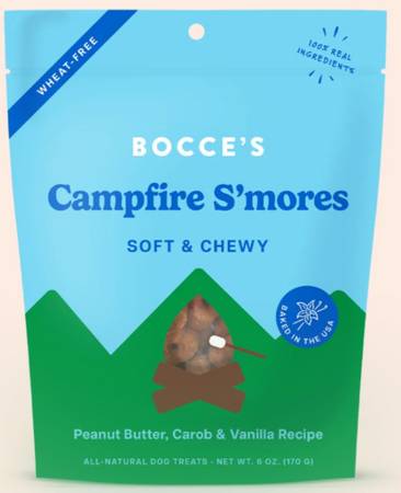 • A 32 oz. bag of soft and chewy Bocce’s Bakery Campfire S’Mores dog treats…just for fun!