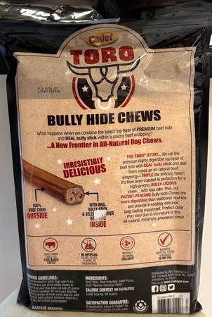 Cadet has been crafting minimally processed, responsibly sourced dog chews and treats for over 30 years. A New Frontier in All-Natural Dog Chews, Cadet TORO Bully Hide Chews combine premium beef hide with real bully stick, then seal them inside an all-natural beef wrapping for three times the flavor.