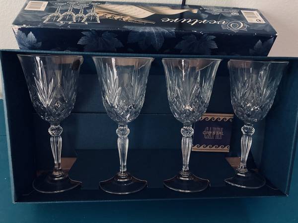 Capri Italian Cyrstal Goblets. Overture set of 4. New, unused in box. This beautiful crystal stemware would make a great gift. Cristallo Al Piombo 24% Italia.