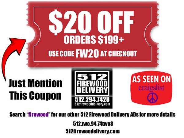 Firewood Delivered $20 OFF SALE !! Special Coupon - general for sale...