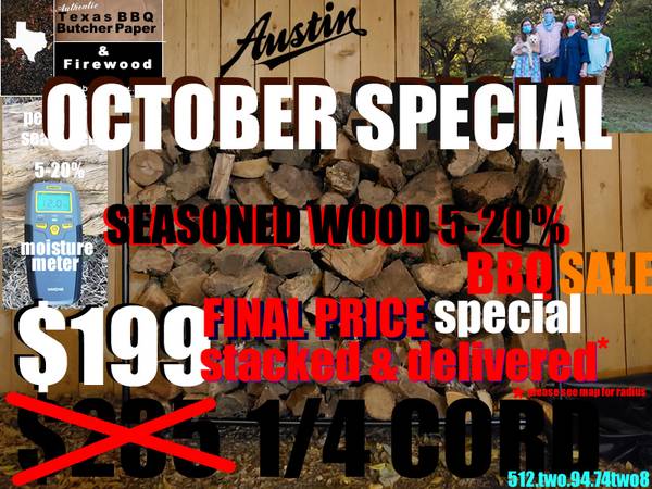 October Firewood Sale – Stock Up Now for Fall! Seasoned Firewood Available: Post Oak Live Oak Pecan Mesquite Hickory Pickup or Delivery Available Wood Yard for Discount Save Big This October! Visit...