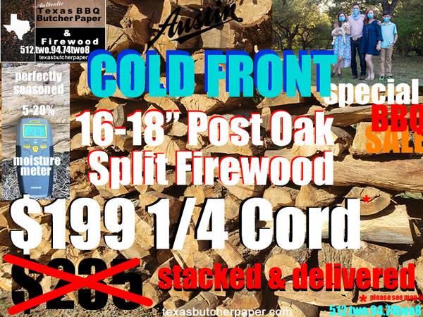 October Firewood Sale – Stock Up Now for Fall! And for this COLD FRONT!! Seasoned Firewood Available: Post Oak Live Oak Pecan Mesquite Hickory Pickup or Delivery Available Wood Yard for Discount...