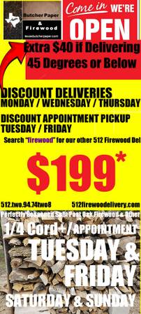 Firewood Delivered Stacked or Wood Yard Pick Special - BUY NOWSeasoned Firewood Available: Post Oak Live Oak Pecan Mesquite Hickory Cedar Etc. Pickup or Delivery Available M, W, TH Wood Yard T, F,...