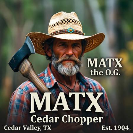 Firewood BBQ Stacked & Delivered OR Wood Yard South Austin & all over ATX, Meet MATX Est. 1904 Pearl, TX Coryell County Special - MATX The Original O.G. Cedar Chopper from these here parts!