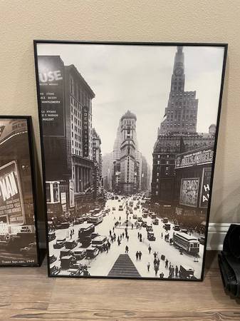 Have multiple glass metal framed black and white historic pictures that came out of my business. Asking $30 each and have about 25 total. Most are of New York City historical landmarks and are 24"x36". Great for home or business. Cash only. Call, text, or email with any questions.