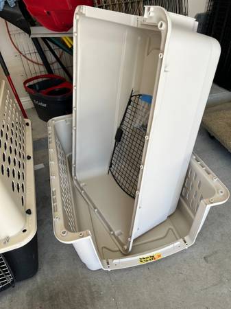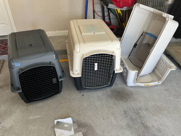 Selling 2 extra large and 1 large plastic pet kennels in good condition. Pricesbelow: $ 45------32" Large Gray Petmate Plastic Kennel - 3 sides vented, very good condition, 32L 22W 26H $ 50------36"...