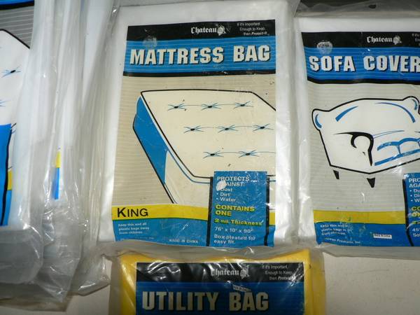 Text or Call five one two five six seven nine zero two seven QJZX ******$10 EACH******** 19 Chateau Full Protective Plastic Full-Size Mattress 2 King Mattress Bags One Sofa Cover 45" x 152" (9'6")...