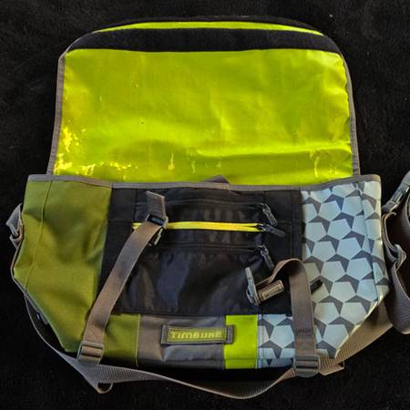 Timbuk2 Messenger Bag - Size Large - Measures (closed) approx. 20 inches wide x 12 inches tall x 8 inches deep. With laptop storage and insert. Shows wear on inside flap and inside bottom. Overall in good shape. Water resistant. Cash please. Email with questions.
