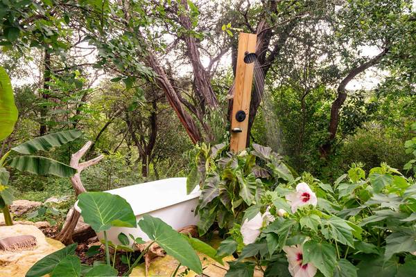 We had it setup with an outdoor tolet, cast iron bath tub and outdoor shower. (Toilet, and Tub Included)