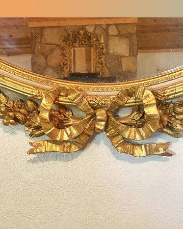 This French antique hand carved 24K gold guild 1800s mirror is 5' x 4' feet and features meticulously crafted detail. Send an offer!