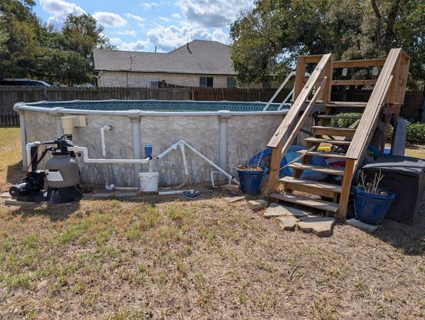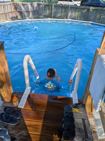 We have an above ground pool for sale. This pool comes with the small deck, stairs, additional pool ladder, chemicals, pool floats (some brand new) The liner is in good condition. no holes. You have...