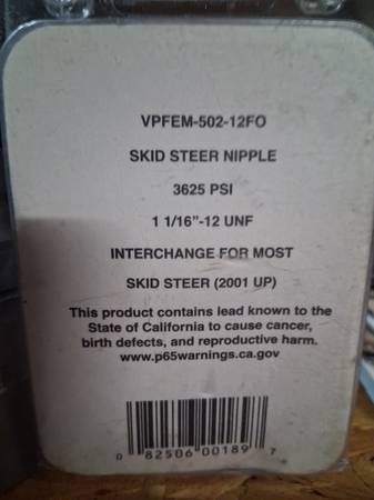 Pioneer VPFEM-502-12FO Skid Steer Nipple 3625psi