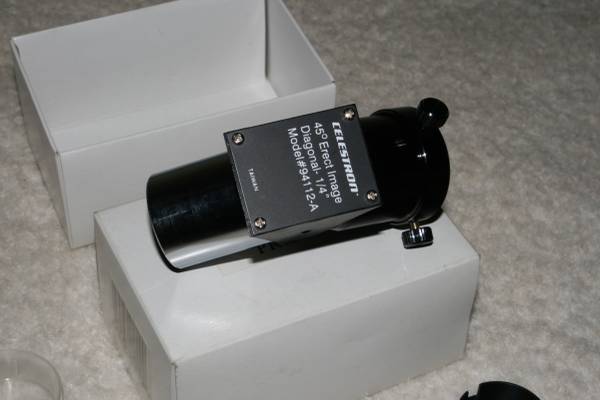 A Celestron 1 1/4" 45 degree Telescope diagonal. True Prism Diagonal.. Vintage, from Taiwan. All metal and glass. (Better quality than China imports) Erect image Like new , very clean.. works...