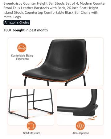 Sweetcrispy Counter Height Bar Stools Set of 4, Modern Counter Stool Faux Leather Barstools with Back, 26 inch Seat Height Island Stools Countertop Comfortable Black Bar Chairs with Metal Legs. In...